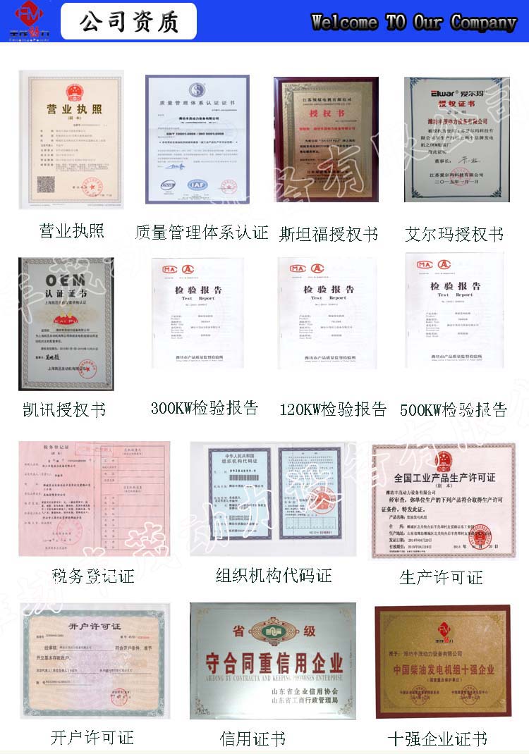 发电机:上海斯坦福、广州英格等知名品牌。